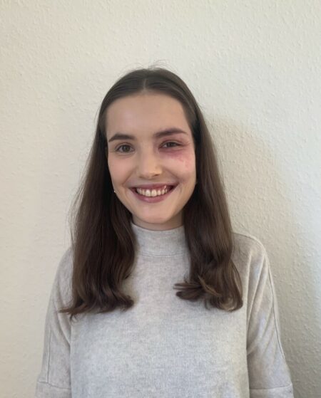Ich habe ein Feuermal auf der linken Gesichtshälfte. Der Fachbegriff dafür ist ‚Naevus Flammeus‘. Meine Eltern haben sich bei meiner Geburt dazu entschieden, es nicht weglasern zu lassen, um mich später einmal selbst entscheiden zu lassen. Meine Mutter hat mir nach meiner Geburt versprochen, mein Feuermal nie in irgendeiner Weise vor anderen zu verstecken. Mit 13 Jahren habe ich mich letztendlich für eine Lasertherapie im Kinderspital entschieden. In Behandlung war ich bis zu meinem 18ten Lebensjahr. In meiner Familie war meine Hautauffälligkeit glücklicherweise nie ein grosses Thema. Meine Mutter hat mir regelrecht eingebläut, dass es etwas Besonderes und Schönes ist. Ich selbst war auch immer davon überzeugt, dass es cool ist, ein Feuermal zu haben und bin sehr selbstbewusst damit umgegangen.