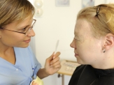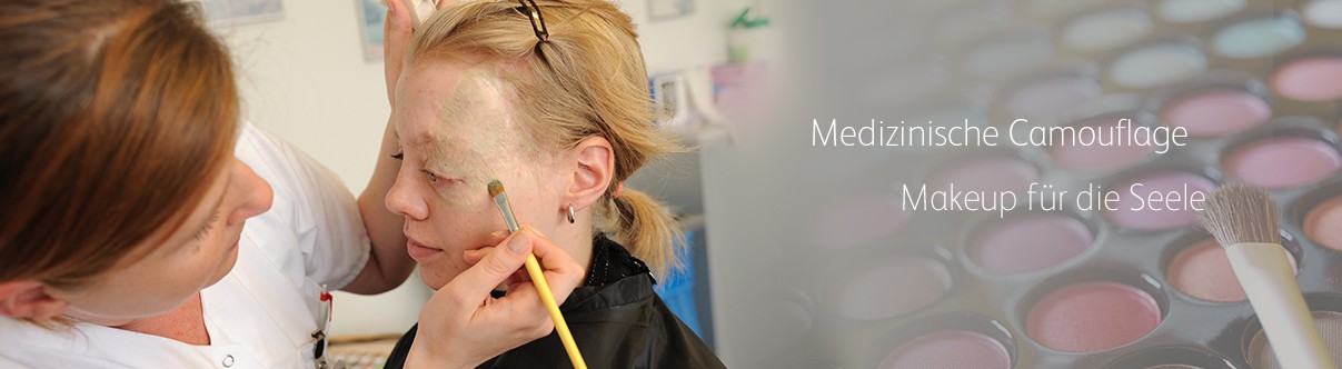 Medizinische Camouflage – Make Up für die SeeleFür gewisse Hautunregelmässigkeiten gibt es medizinisch nur eingeschränkte Behandlungsmöglichkeiten. Auch nach plastisch-rekonstruktiven Operationen bleiben häufig sichtbare Narben zurück. Manchmal kann eine Narbe oder eine Hautauffälligkeit im Gesicht oder an anderen Körperstellen störend sein. Die medizinische Camouflage bietet eine Möglichkeit, Hautunregelmässigkeiten farblich an die umliegenden Hautareale anzupassen und somit davon abzulenken. Was ist Camouflage?Camouflage ist ein stark deckendes Make-up, welches bei störenden Narben, Feuermalen, Hämangiomen und weiteren Hautunregelmässigkeiten angewendet werden kann. Es kann sowohl im Gesicht, wie auch am restlichen Körper angewendet werden. Dabei wird Camouflage individuell auf den Hautton der betroffenen Person angepasst. Die von uns verwendete Produkte sind sehr hautverträglich und, bei korrekter Anwendung, kann man damit eine hohe Wischfestigkeit erreichen.